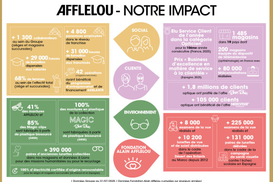 Le modèle économique du Groupe AFFLELOU est basé sur la franchise et porte avec succès son développement. Le Groupe est présent dans 19 pays dont la Suisse avec plus de 1 500 magasins.